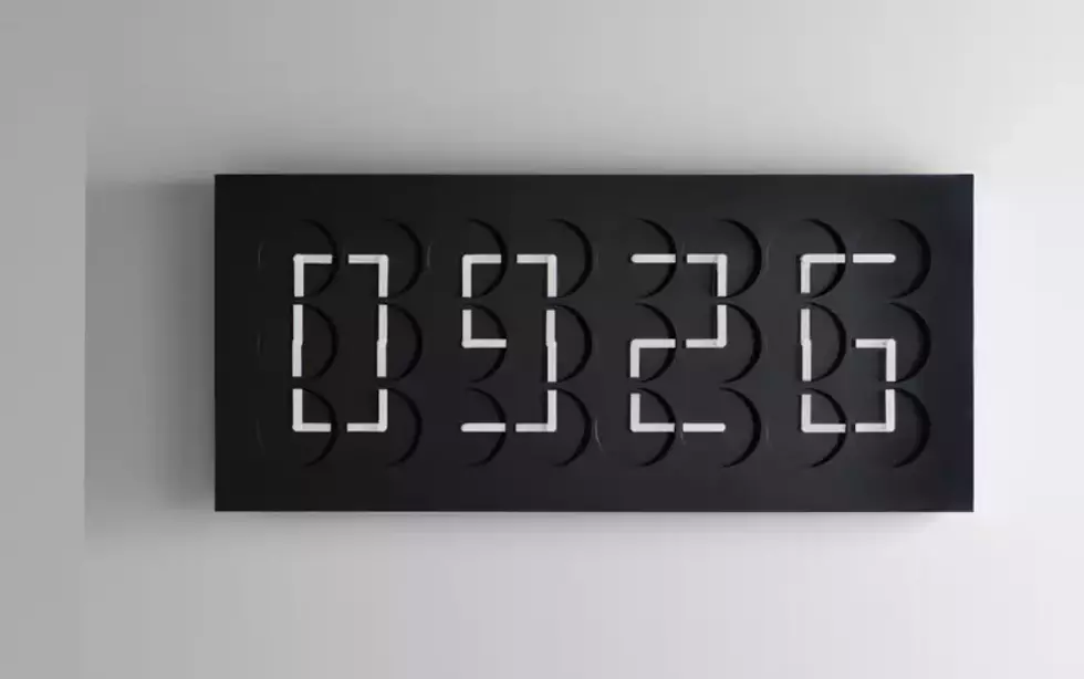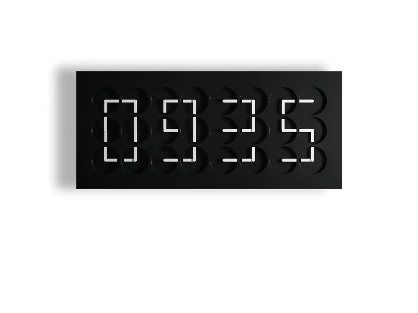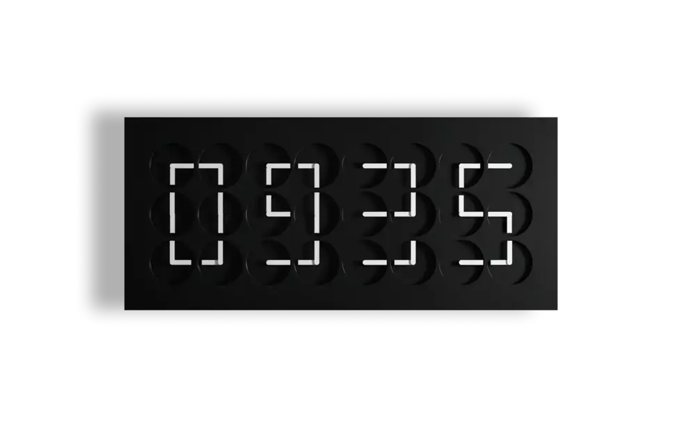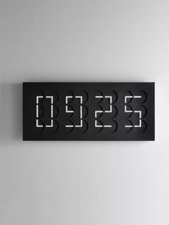 Twenty-four clocks come together to tell a collective story in one singular digital display. Each individual clock hand is choreographed in line with the others, so that these clocks tell the time as a collective, rather than individually.