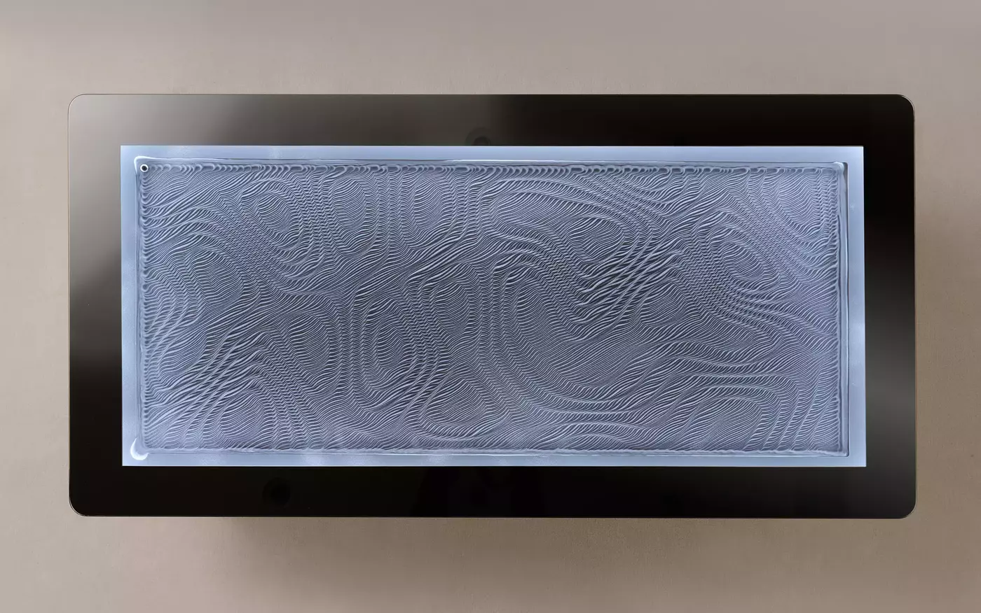 This contemporary rectangular shape fits perfectly in front of a sofa, offering a spectacular surface from which to admire the infinite patterns unfolding before your eyes. Combining sleek design and relaxation, the Dimension S instantly becomes the centre piece of your interior.