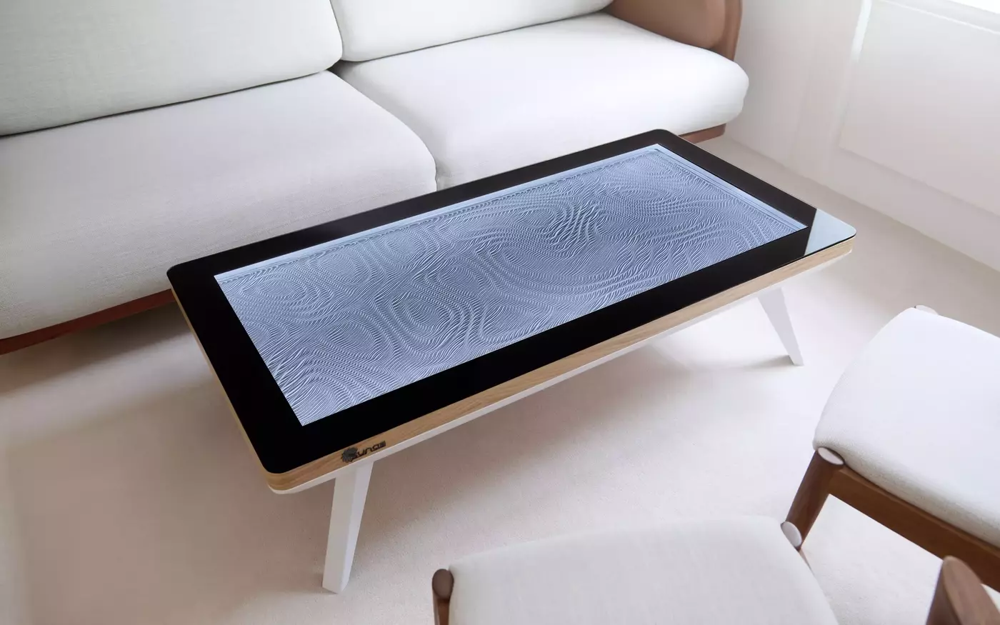 The Sunae Dimension S sand table brings the Japanese Zen Garden directly into the home with a coffee table featuring a Zen Garden underneath its glass surface. The rake has been replaced by an intuitive mobile app that allows you to create a myriad of designs. Just one click and a metal ball traces lines through the sand in a mesmerizing way. Whether you enjoy watching new designs take form or prefer to contemplate the result, the Sunae table is both soothing and calming for the mind. Each Sunae table is meticulously handcrafted and assembled in Switzerland.