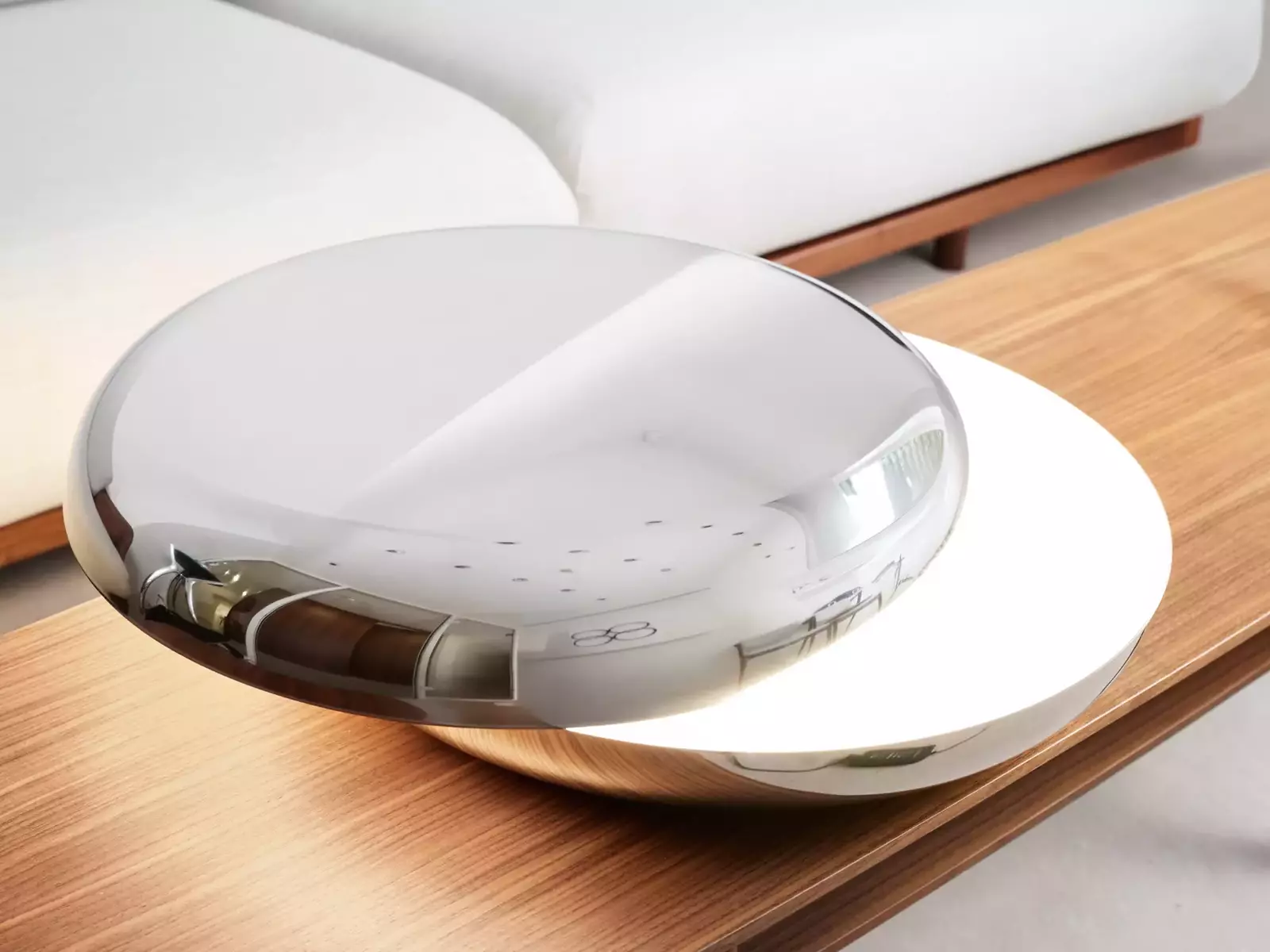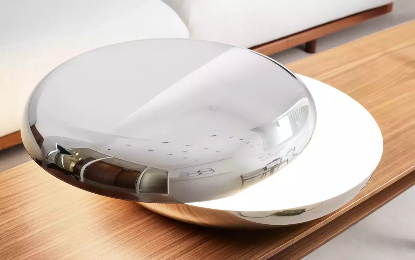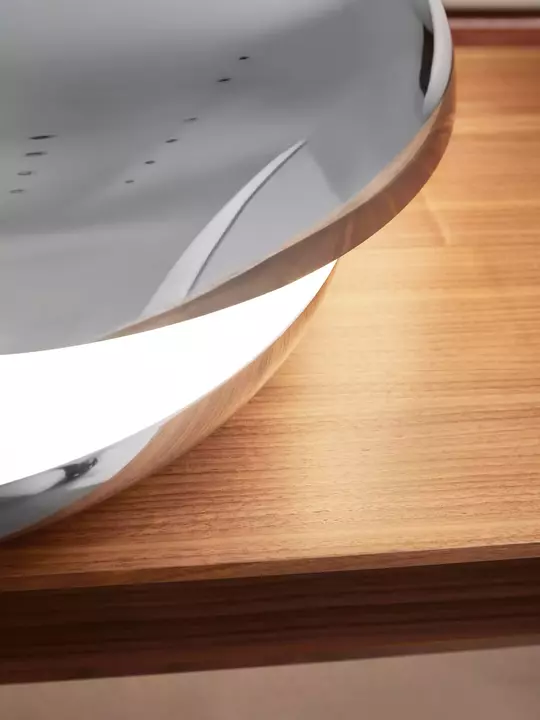 A luminous object with unique appeal. The upper part of the body rotates to allow complete management of the intensity of the light. Loop can be put on a table or on the floor.