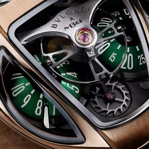 Giving birth to a brand new interpretation of Bvlgari's iconic and historical Serpenti timepiece and bringing it into the very mechanical universe of MB&F haute-horlogerie was both a challenge and pleasure for both Fabrizio Buonamassa Stigliani and Maximilian Büsser. The project required a complete redevelopment of this historical piece, not only in terms of mechanical engineering and movement conception, but also in terms of case design and manufacturing. Calibre and design seamlessly enhance one another.