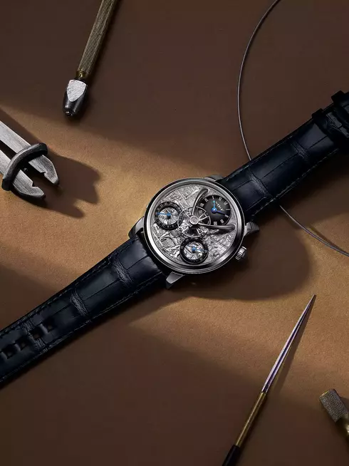 Several adjustments were made to the original LM Split Escapement as well, so as to maximise the available engraving space and allow Jaquet to exhibit his savoir-faire to the fullest. New, openworked date and power-reserve subdials were created, along with wider dial plates. The bezel was redesigned to be slimmer, and the case dimensions reworked, in order to make space for the wider dial plate. Because the bezel and case dimensions were changed, a new dial crystal had to be produced, with a less pronounced curve to the dome, since its diameter was now increased.